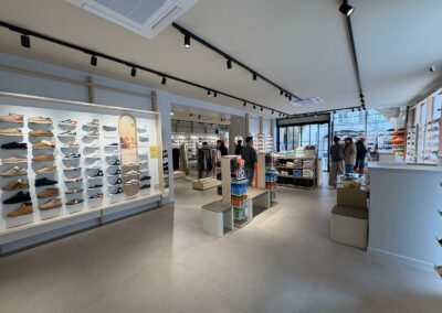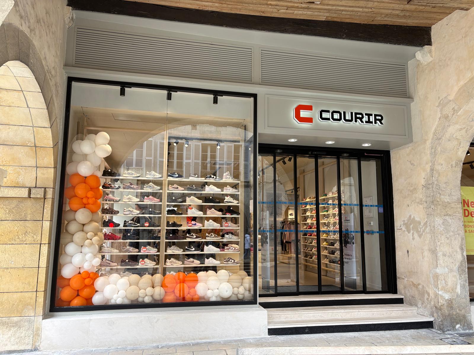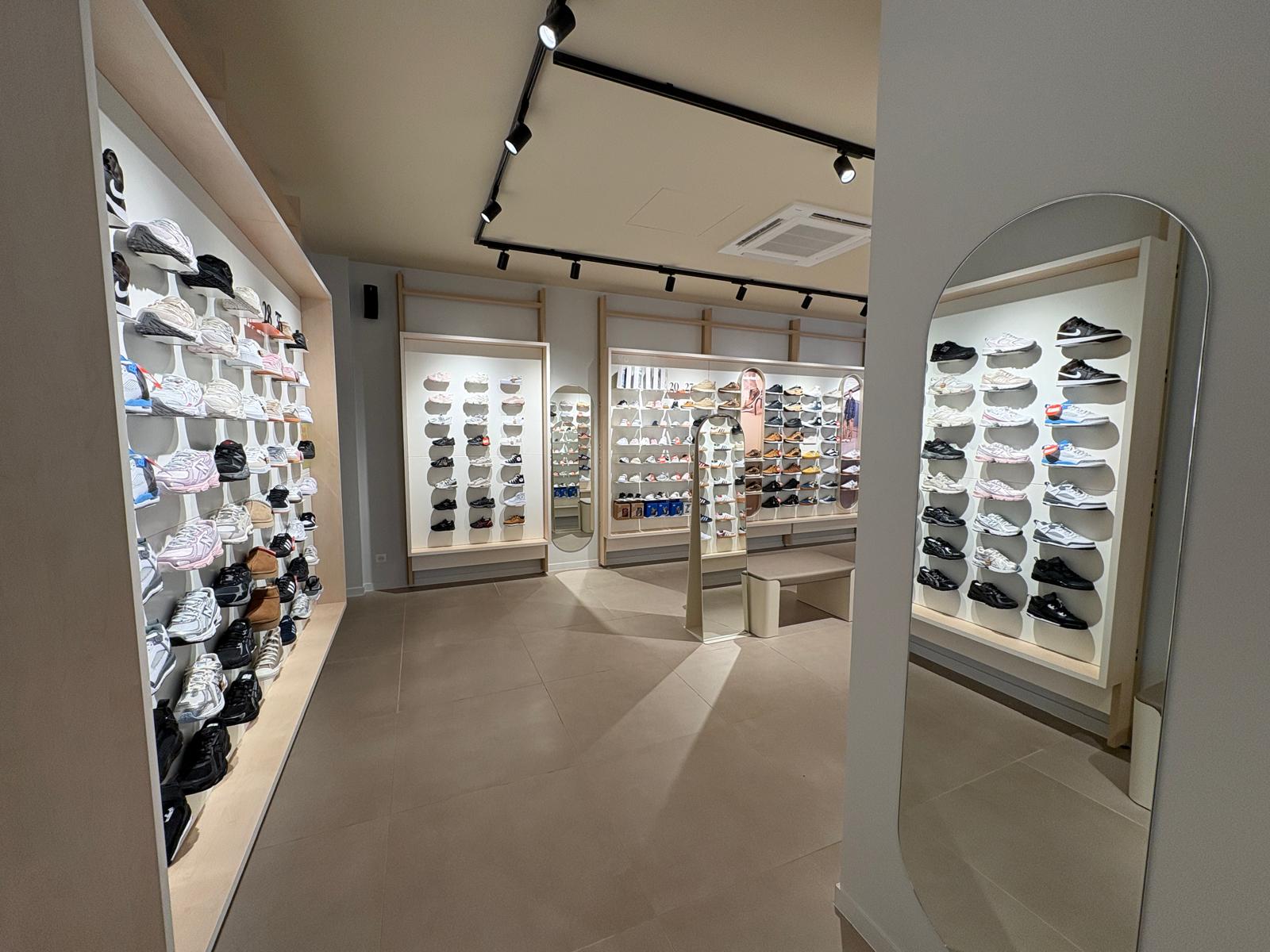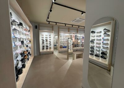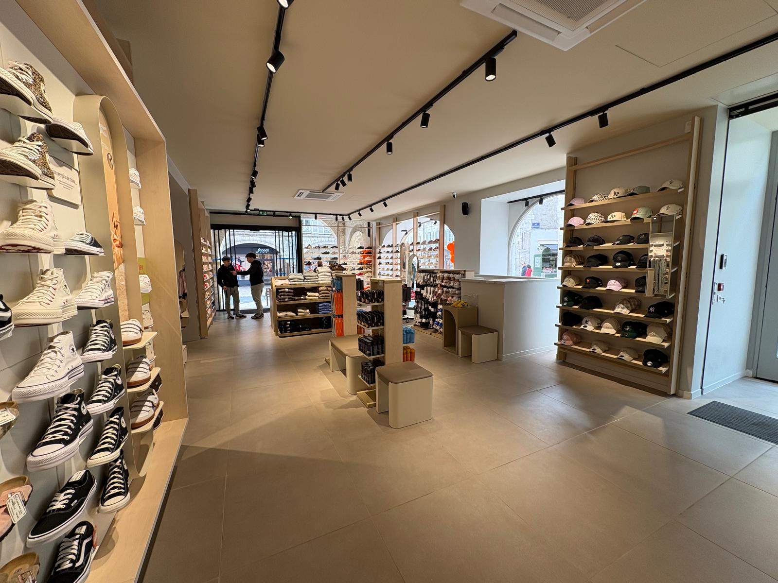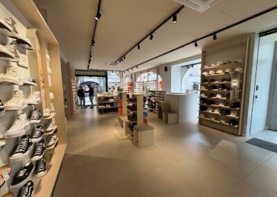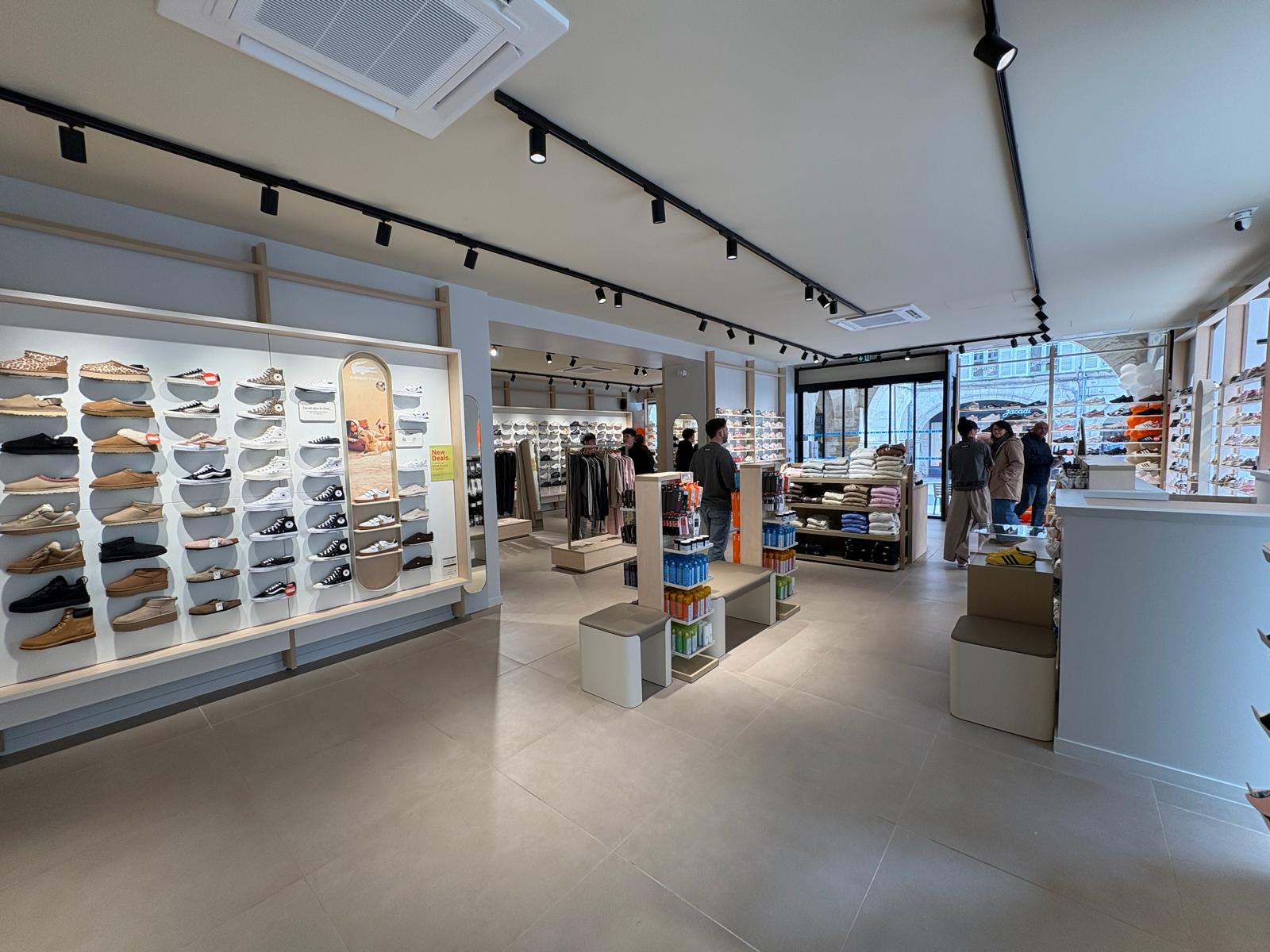 L’espace a été conçu et agencé selon le concept COURIR, tout en optimisant l’organisation intérieure pour répondre aux contraintes spécifiques du site, offrant ainsi une expérience client fluide et cohérente avec l’identité de la marque.